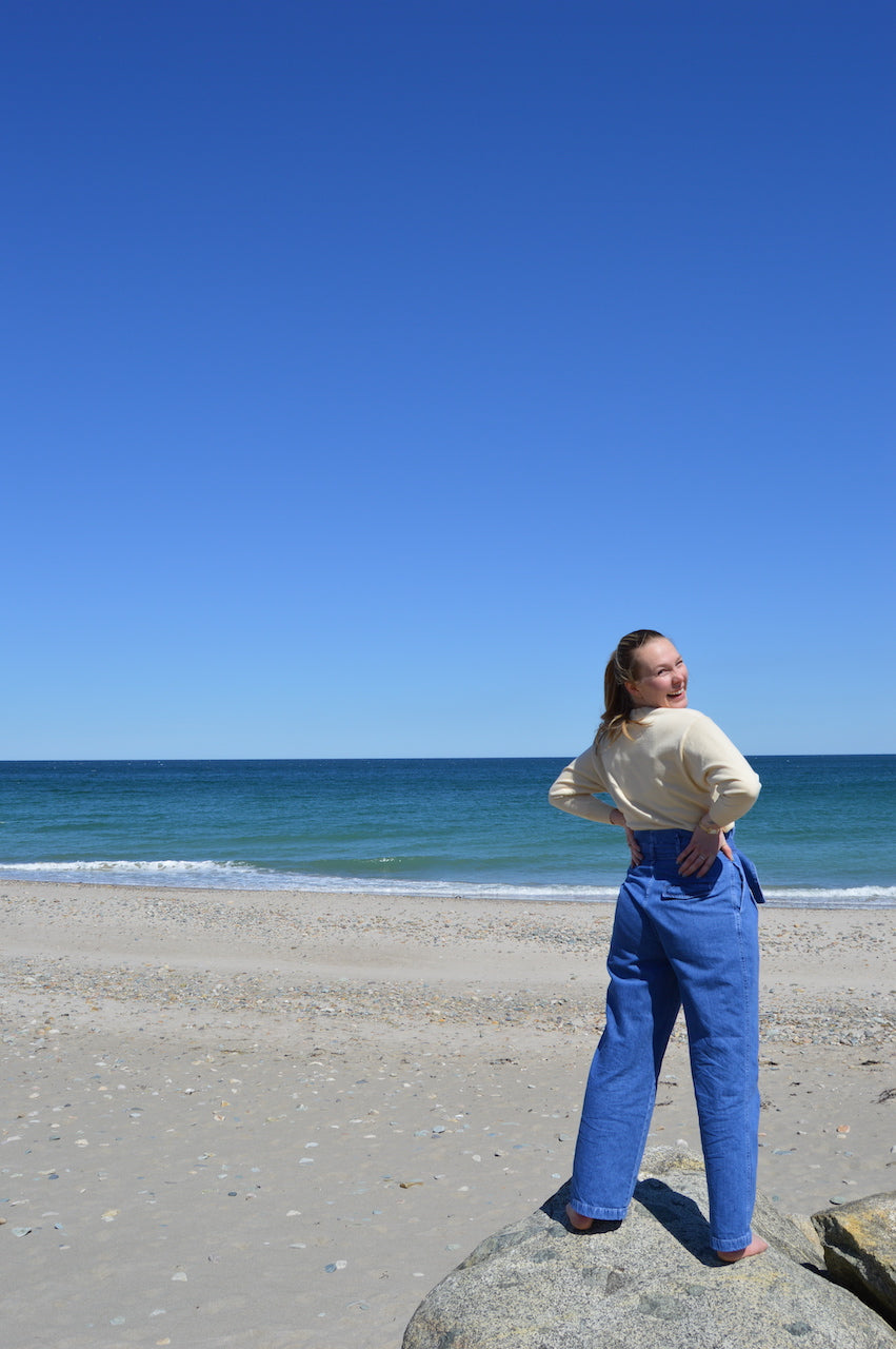 Style with: Your fav white button up, the Costa sweater or stripe long sleeve cropped shirt