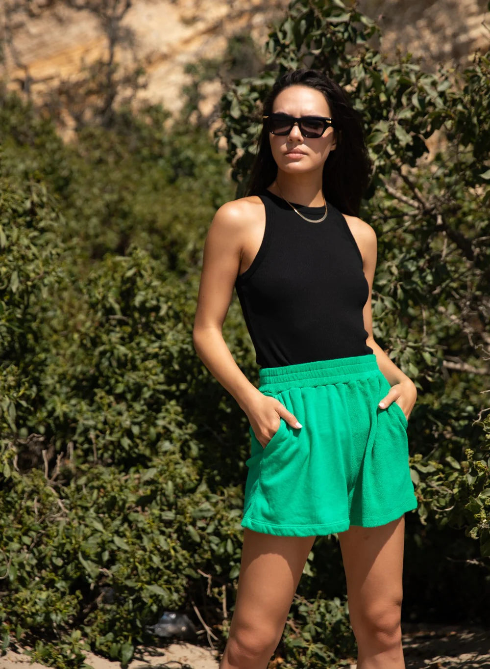Details: The 90s re-introduced with this season's 2x1 rib-knit halter, front and back, cropped tank top. Pair them with your favorite jeans.